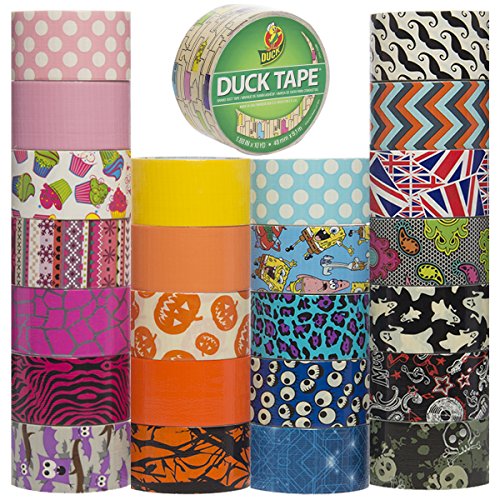- All rolls are 1.88”W, lengths vary between 8-10yd; 25 assorted rolls of quality Duck brand decorative duct tape