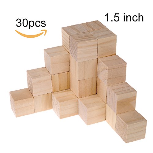 Supla 30pcs 1.5 Inch - Natural Solid Wood Square Blocks Wood Cube Blocks– For Puzzle Making, Crafts, And DIY Projects (30pcs)