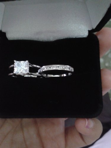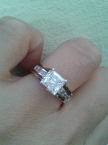 - Title : Solid 14k White Gold Bridal Set Princess Cut Solitaire Engagement Ring with Matching Channel Set Wedding Band Highest Quality CZ Cubic Zirconia 2.0ct.