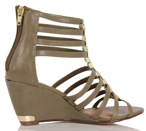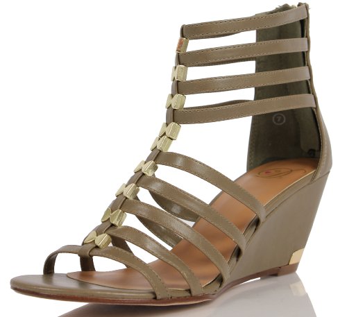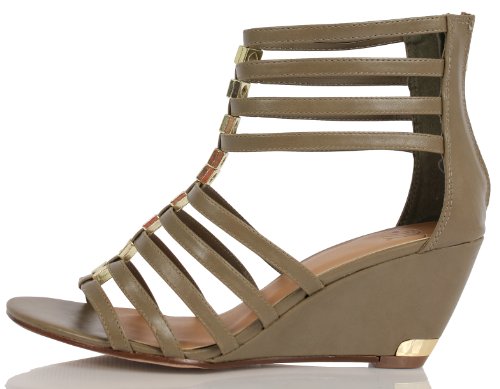 Binding : Apparel Product Description Rock this summers hottest trends and have all eyes on you. These sexy and chic strappy gladiator sandals feature a faux leather lining, gold tone accent for added design. Back heel zipper for easy on and off . Wedge heel for comfort, slightly padded insole and. Heel approx. 2 3/4 inches. 0