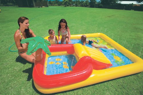 -. Binding : Toy -. Brand : Intex -. Color : multi-colored -. Department : unisex-adult -. EAN : 0696733897101 -. Feature : Two pools in one: small pool and larger wading pool / Includes water slide and inflatable palm tree / Includes control valve to adjust water flow, drain plugs in both pools / Repair Patch included / Hours of fun for the whole family -. IsAdultProduct : 0 -. IsAutographed : 0 -. IsMemorabilia : 0 -. ItemPartNumber : 57454EP -. Label : Intex -. Manufacturer : Intex -. Model : 57454EP -. MPN : 57454EP -. NumberOfItems : 1 -. PackageQuantity : 1 -. PartNumber : 57454EP -. ProductGroup : Toy -. ProductTypeName : TOYS_AND_GAMES -. Publisher : Intex -. ReleaseDate : 2007-12-15 -. Size : 8" -. Studio : Intex -. Title : Intex Ocean Inflatable Play Center, 100" X 77" X 31", for Ages 2+ -. UPC : 791159416445 -. Warranty : N