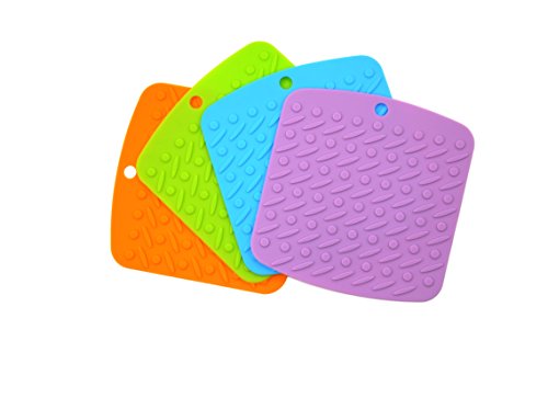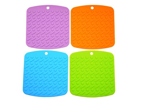 - (Light Blue,Purple,Green,Orange)Silicone Hot Pads / Trivets(Same Color), 7 x 6.7 x 0.11 inch,