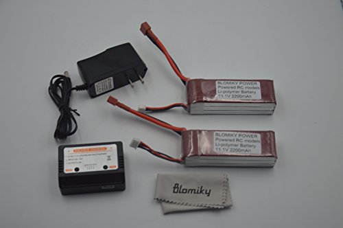 Description Volts: 11.1v Capacity: 2200mAh Cell Configuration: 3S1P Continuous Discharge: 30C Max Burst Rate: 60C Max Volts per Cell: 4.2V Charge Rate: 1C Wire Gauge: 12 AWG Soft and Flexible Low Resistance Silicone Wire Plug Type: T Dimensions: 3.97 x 1.34 x 0.98 Inch,101 x 34 x 25 mm(0-3mm difference) Weight: 5.64oz (160g ± 2g) Packing Contents 2 x 11.1v 2200mah 30c battery 1 x 15V--800mA Wall Charger 1 x 3S 11.1V LiPo balance charger 1 x Blomiky Wipe Features: 1.Superior Japan and Korea Lithium Polymer raw materials. 2.Automatic stacking technology, better performance 3.Strict matching progress, excellent consistency 4.Up to 200Wh/kg energy density 5.Long cycle life (150 times minimum) 6.1 years warranty 0