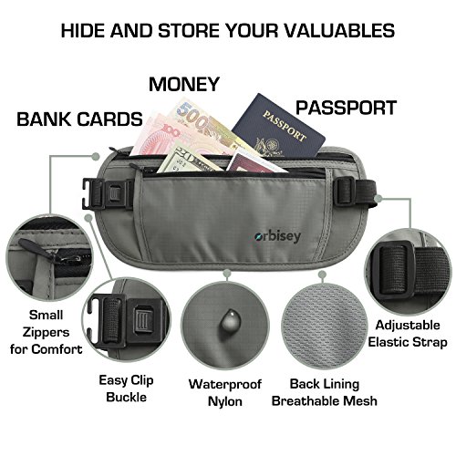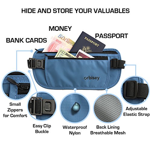 -. Title : Orbisey Travel Adventure Hidden Waist Money Belt Water-Resistant for Passport, Credit Cards, Phone, Documents One-Size Fits All