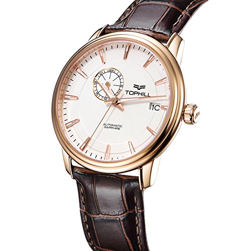 -. Title : Tophill Men's Sm51015 Automatic Self Wind 24 Jewel Leather Strap Watch Brown