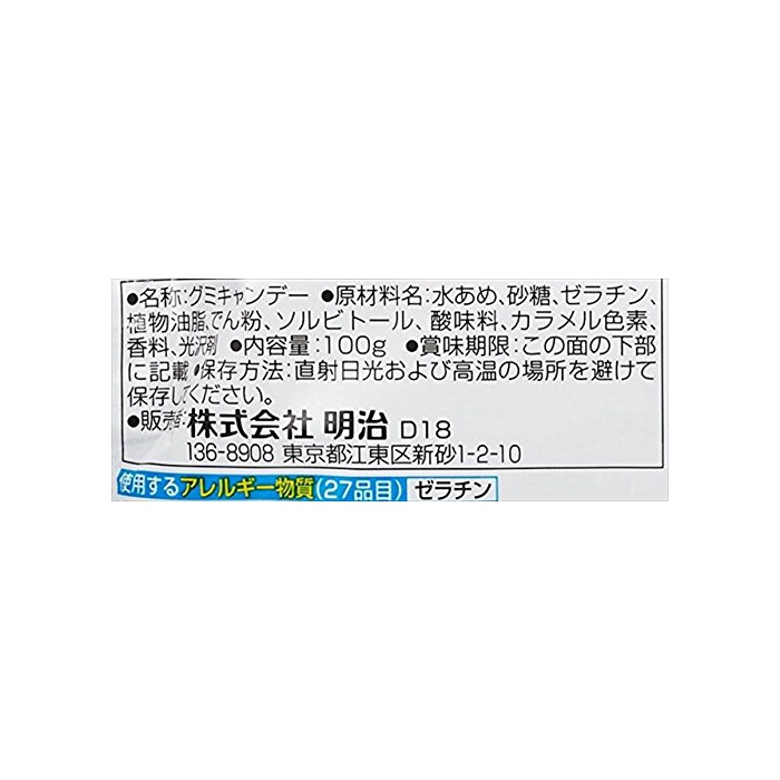 원재료:물엿,설탕,젤라틴,식물성 기름지,나오지 않겠 분,솔《비토루》,신맛료,카라멜 색소,향료,광택 제