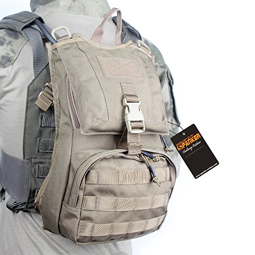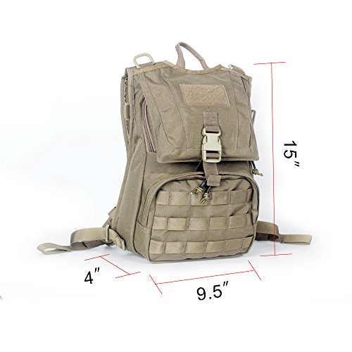 -. Feature : ·Made of 1000D nylon material, waterproof and durable, designed Molle system, can be attached to other small equipment / ·Fully adjustable straps with quick release buckle, filled with breathable mesh at shoulder to provide better comfort / ·There are two kinds of water bag backpack use: one is directly on your shoulder, the other is attached to your tactical equipment / ·The backpack comes with a number of spaced pockets that can be attached to important items such as: cell phones, wallets, cameras, medical supplies, gadgets, and so on / ·Widely used: for outdoor sports, hunting, tactical games, travel, leisure, hiking, camping, mountaineering, cycling, running