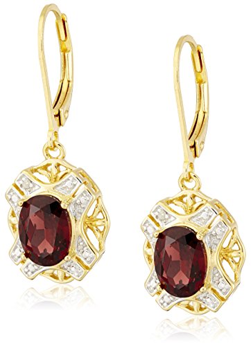 18k Gold Rhodium Plated Sterling Silver Two-Tone Oval Garnet Lever Back Dangle Earrings