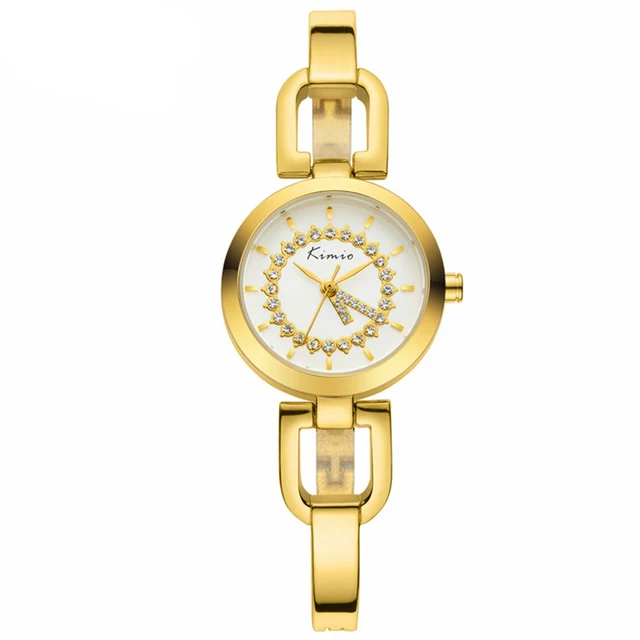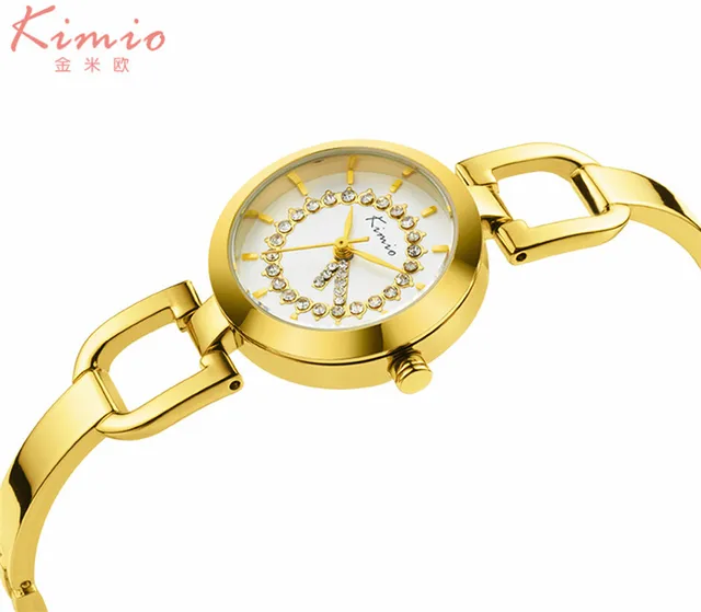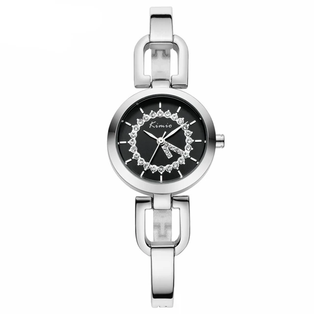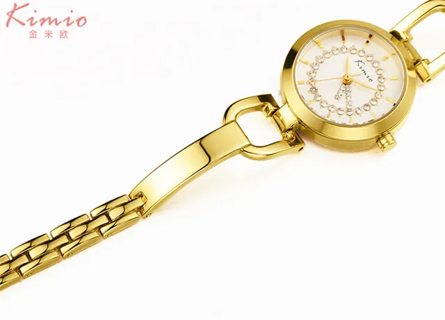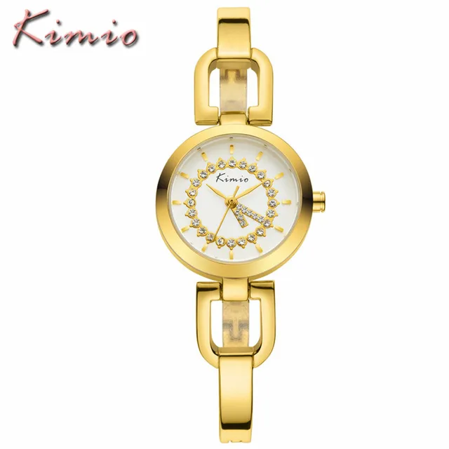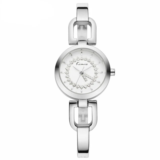 | [해외] Kimio 새로운 여성 시계 브랜드 여성 드레스 라인 석 팔찌 시계 방수 스테인레스 스틸 쿼츠 시계 relogio feminino |