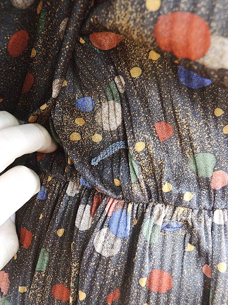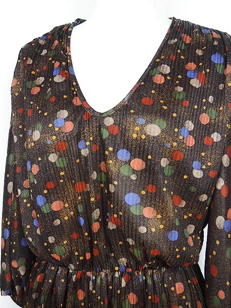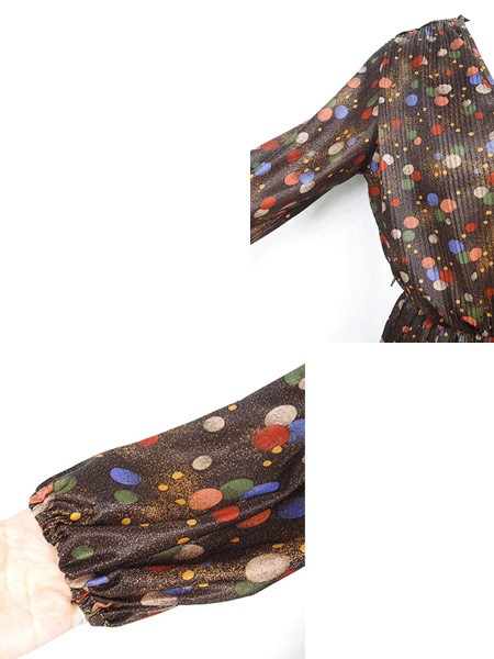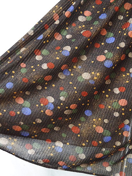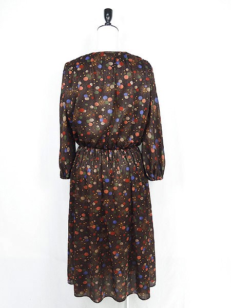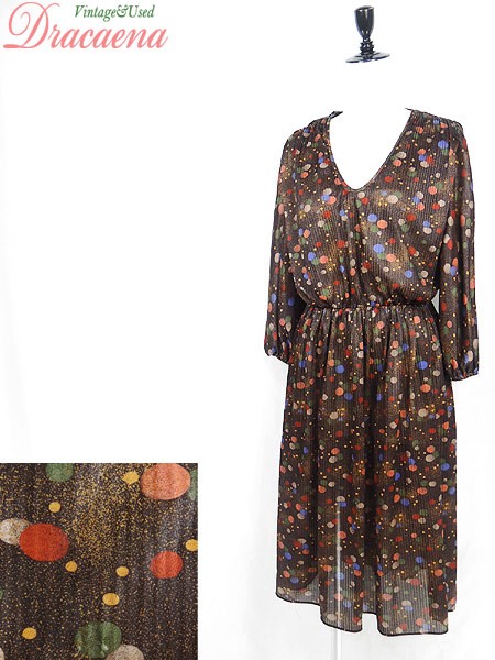 Ladies ブランド- カラー茶ベース メール便不可 コンディション★★★ 素材- 表記サイズ- スタッフコメント裏地なし。背中真ん中付近に穴あき、糸の出あり。左袖に糸の出、ツレ感あり。 実寸サイズ 着丈 110 cm 身幅 47 cm 肩幅 40 cm 袖丈 48 cm ウエスト 60cm 〜 80cm (24インチ〜31インチ) ※ウエスト・ヒップ以外は平置き採寸