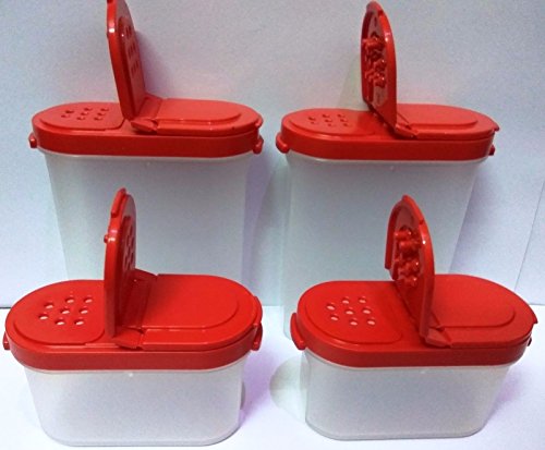 Product DescriptionTupperware small spice containers. One side is a shaker lid the other opens for lager amounts. 2 Big 2 small container .0