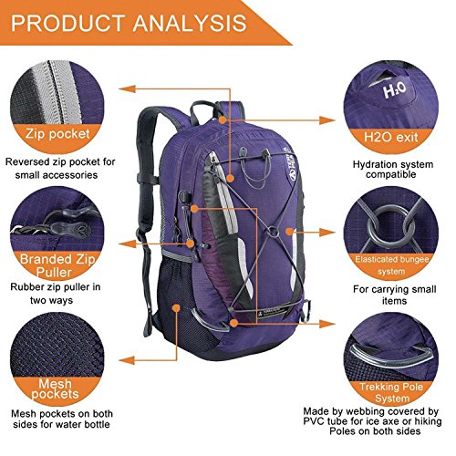 -. Brand : TERRA PEAK -. Feature : THE TERRA PEAK 30L HIKING CYCLING BACKPACK Features A Sleek Design And Plenty Of Room For All Your Gear . / Women-Specific Fit . / TERRA PEAK 30L Injection-Molded Shoulder Straps With Additional PE Foam For Added Comfort . / Comfortable , Padded Chemise Back Panel With Spine Channel And PE Sheet For Extra Back Support . / Stowable Hipbelt And Chestbelt Can Be Worn For Added Stability . Large Main Compartment With Padded Laptop Sleeve And Hydration Clip / Port - Fits Most 15" Laptops . Secondary Compartment With Organization Panel . Front Stash Pocket With Zip Closure . Bungee Storage System On The Front . Mesh Side Water Bottle Pocket . Reflective Light Loop . Safety Whistle Located On The Chest Buckle . Endorsed By The American Chiropractic Association (ACA) . -. IsAutographed : 0 -. IsMemorabilia : 0 -. Label : Go Tour -. Manufacturer : Go Tour -. MPN : TERRA PEAK- 30l Purple/Black -. PartNumber : TERRA PEAK- 30l Purple/Black -. ProductGroup : Sports -. ProductTypeName : OUTDOOR_RECREATION_PRODUCT -. Publisher : Go Tour -. Studio : Go Tour -. Title : TERRA PEAK Womens Women's 30L Hiking Cycling Backpack