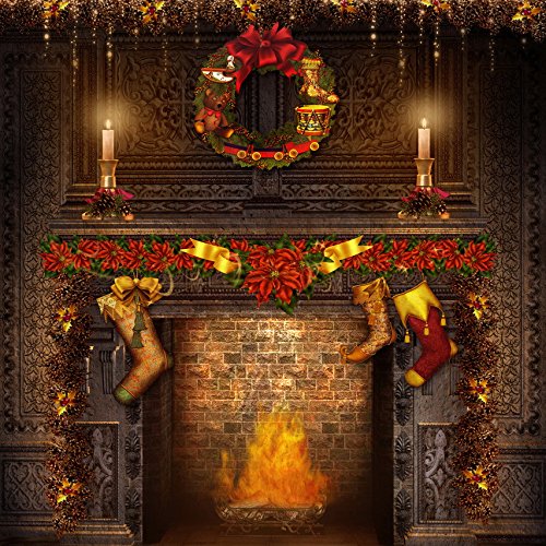 Yelewen 10x10ft Christmas Wreath & Fireplace Thin Vinyl Customized Digital Printed Photography Backdrop Prop Photo Background