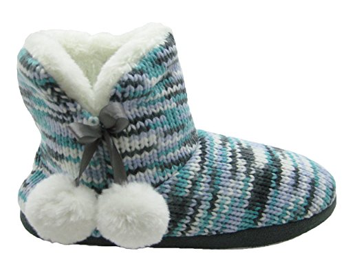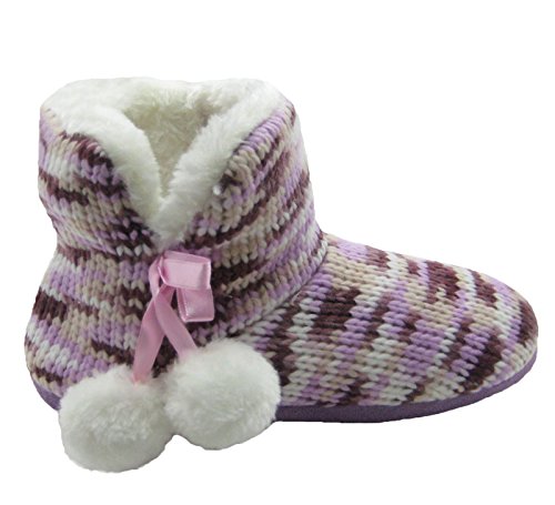 Binding : Apparel Product Description Cold weather requires bundling up, but bundling up doesn't mean that you have to sacrifice style for warmth, even in your own home. These beautiful boots are multicolored style that will stand out anytime. The entire outside of the boot is a made in a knit style, creating a very soft look. On the sides is a pair of white pom-poms hanging off satin ribbon that adds another layer of cuteness to the whole package. A fleece lining trim lines the top of the boots as well as the side with this fur also covering the entirety of the inside of the boot that will cushion your feet wherever you go in your home. Brighten up the cold days with a pair of these boots! 0