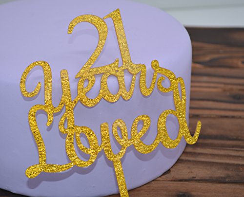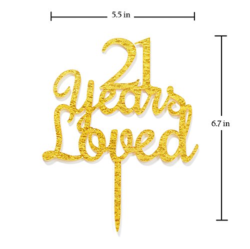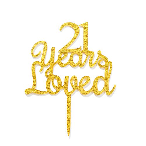 Qttier 21 Years Loved Cake Topper Happy 21st Birthday Anniversar Party Decoration Premium Quality Acrylic Gold