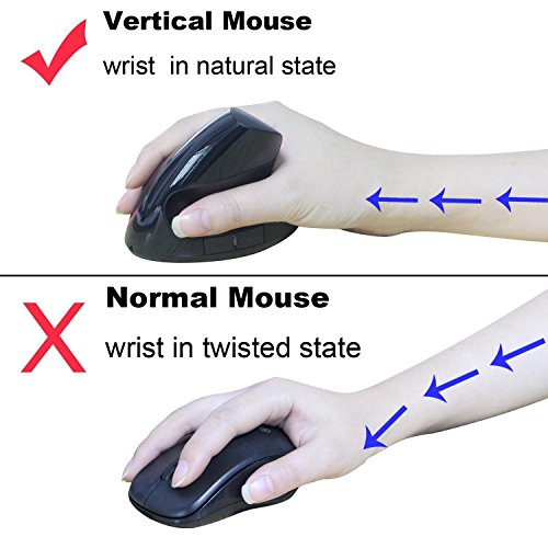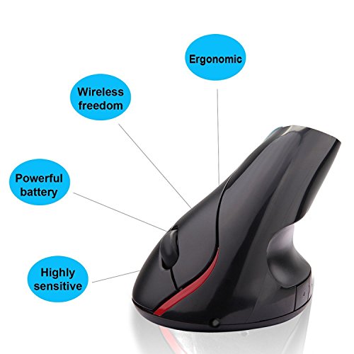 ANEWKODI 2.4Ghz Ergonomic Wireless Optical Vertical Mouse with USB Receiver - Black B01DBR44TQ