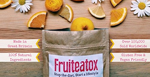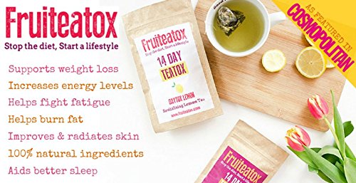 -. Binding : Health and Beauty -. Brand : Fruiteatox -. Feature : Stop The Diet, Start The Lifestyle / Fruiteatox is a blend of the finest leaves, flowers and roots provided by nature, which, infused with a hint of fruit, is not only cleansing, but also incredibly delicious. / Thermogenic properties Boosts metabolism - burn fat faster Flatter tummy - helps symp of bloating Appetite suppressant-feel fuller longer Diminishes cellulite Detoxes body Colon cleansing Liver cleansing Gives great energy thru out the day Bursting with antioxidants, vitamins and minerals to make you feel and look great / All Natural Loaded with benefits / Made in the UK -. IsAdultProduct : 0 -. Label : Fruiteatox -. Manufacturer : Fruiteatox -. ProductGroup : Health and Beauty -. ProductTypeName : HEALTH_PERSONAL_CARE -. Publisher : Fruiteatox -. Studio : Fruiteatox -. Title : Fruiteatox Skinny Organic Cleanse TEA - Diminishes Cellulite, Detox, Loose Fat