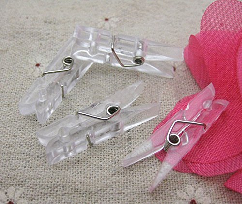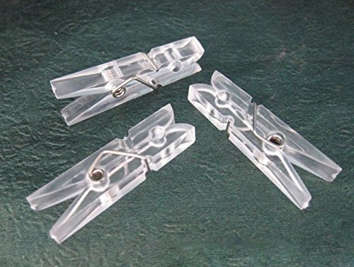 -. Feature : Material:plastic; Color:clear,as picture show. / Size:3.5 X 0.55 X 0.85 cm / Easy to use and carry for clothes line,bag sealing,chip bags,clothes pins,hanging photos and so on. / Great for baby clothes,saliva towel,wall photo decoration,memo or other small stuffs. / Package include 50pcs
