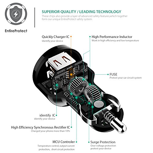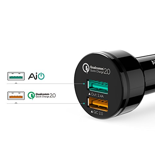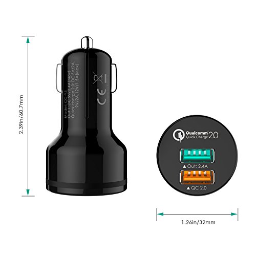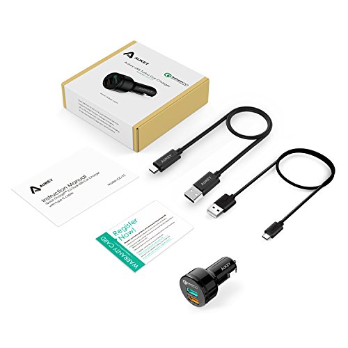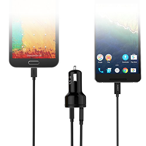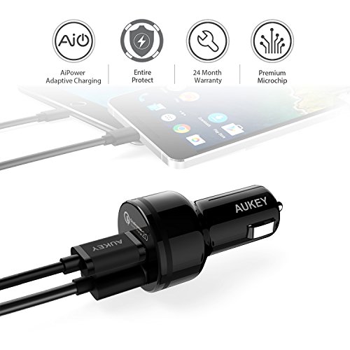 AUKEY Dual Port Car Charger with Quick Charge 2.0 & USB-C/Micro-USB Cable for Samsung Galaxy S7 Edge, Nexus 6 & More