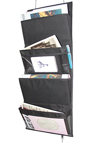 Misslo Mail Organizer Office Wall Mount Over the Door Magazine Storage (4 Pockets, Black)