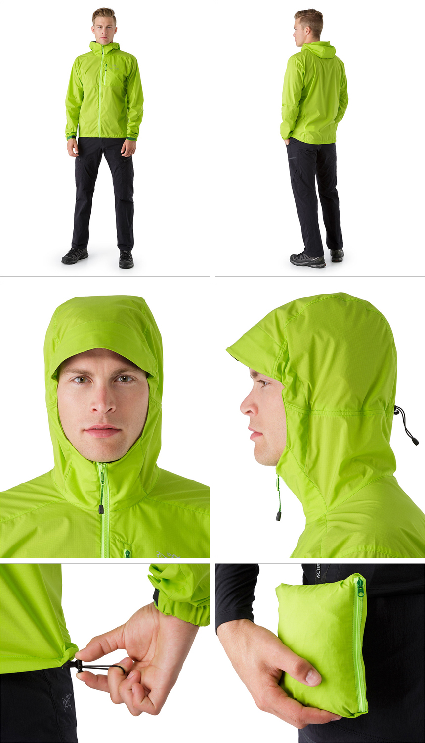 컴팩트한 디자인의 초경량 소프트쉘 후디 재킷으로 발수성과 내구성이 매우 뛰어나다. 엉덩이까지 내려오는 풀 커버 사이즈로 바람을 완벽히 차단해주며 레이어링을 위해 약간 여유있는 핏으로 디자인 되었다.