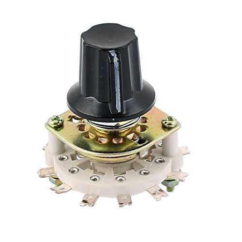-. Feature : Country of Manufacture: CHINA; Material: Metal, Ceramic, Plastic; Net Weight: 42g / Package Content: 1 x Rotary Switch;1 x Plastic Cap; Model: KCZ2*5; Main Color: White, Bronze Tone / Product Name: Rotary Switch; Dimensions(Not IncludeTerminals): 46 x 48mm/1.8'x1.9'(D*H) / D-Shape Shaft Diameter: 6mm/0.24'; D-Shape Shaft Length: 10mm/0.4' / Pin Number: 1 x 12; Contact Type: 5 Pole 2 Throw