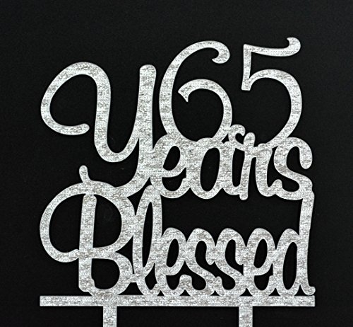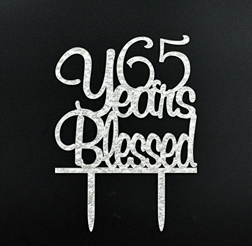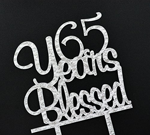 Firefairy(TM) 65 Years Blessed Acrylic Cake Topper 65th Birthday Anniversary Party Decoration Supplies(Silver)