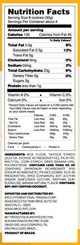 - 100% VEGAN COOKIES: following our lifestyle, our factory does not handle any gluten, milk or eggs, making our products free from gluten, milk, lactose or eggs. Simple and 100% natural products! The banana & cinnamon cookies contain 2 g of sugars per 30 g serving, being that Sugar derived from unsweetened dehydrated fruits (prunes and dried bananas), making this product relatively low in sugars.