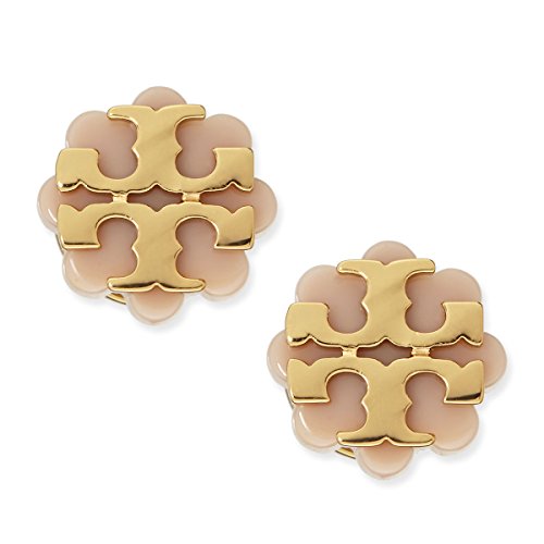 -. Title : Tory Burch Logo Flower Resin Stud Earrings Light Oak Gold