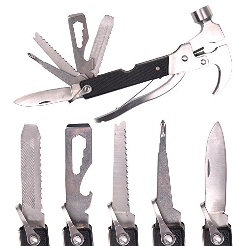 - Feature : Made of stainless steel, durable and portable / Multi-function tool includes hammer, pliers, saw blade, knife, etc / The 8-in-1 stainless steel hammer is perfect for camping , outdoor activities or household fixes / Comes with a nylon-canvas sheath for carrying or storage / Measures 6.2"