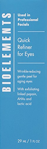 ReleaseDate : 2014-03-01 Studio : Bioelements Publisher : Bioelements Binding : Health and Beauty Product Description Bioelements Quick Refiner for Eyes is a fast-acting, clinically proven gentle peel for aging eyes with exfoliating linked papain, AHAs and lactic acid. It eliminates the signs of fatigued, aging eyes. It goes to work instantly to exfoliate skin around eyes, and sweep away fine lines, wrinkles and dryness. Speeds cell turnover - boosting brightness and targeting stubborn milia - as comforting botanicals envelop skin in a blanket of soothing moisture. Created for the most delicate, sensitive skin. ?Ophthalmologist tested. 0