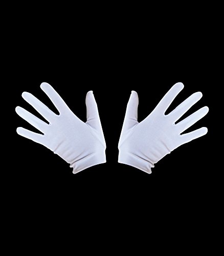 Studio : Everready First Aid Publisher : Everready First Aid Binding : Toy Product Description One pair of custom made white gloves are made of stretchy polyester. Smooth and comfortable to wear for Halloween, party, wedding, prom, masquerade, dance, formal, theatrical, or any other occasions! Suitable for many costume ideas including clown, magician, superhero, sailor, and Santa Claus. 0