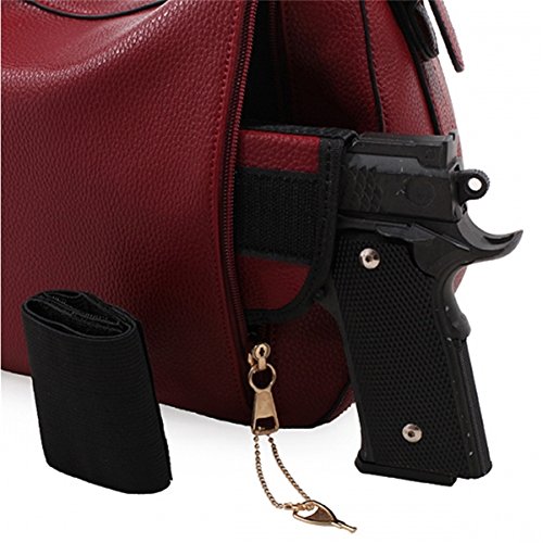 Binding : Apparel Product Description Concealed carry purse handbag with zipper matching wallet.Separately concealed compartment on back with 2-zipper-openings for both right and left hand side carriers.New Lock and Key feature for safe and secure weapon storage.Turn Twist Lock Clasp Closure Interior zipper and slip pockets adjustable shoulder strap.Removable holster included Concealed pocket measurement: 9.5"W X 7"H,Purse Dimensions: 11"L x 6.5"W x 11"H. 0