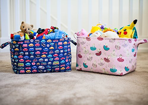 Pink Toy Storage Basket for Girls with Ballerinas, Nursery Hamper, Closet and Kids Laundry Organizer and Gift Basket