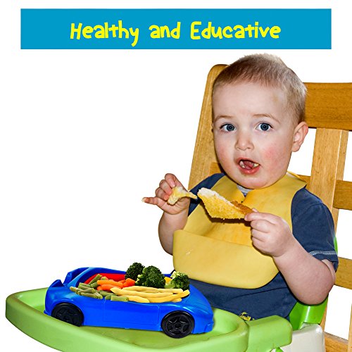 Joy Kids Plate | Cute Colorful Toy Car Shaped Children Plate Set with Removable Compartments | Safe Durable BPA-Free Food-Grade Washable...