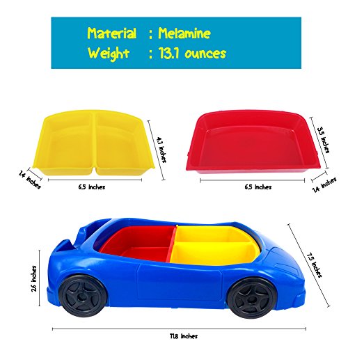 Premium Material – This car shaped plate kit is made of sturdy, heatproof melamine material. It won’t break easily when falling over and reheat-able in the microwave for eating later!