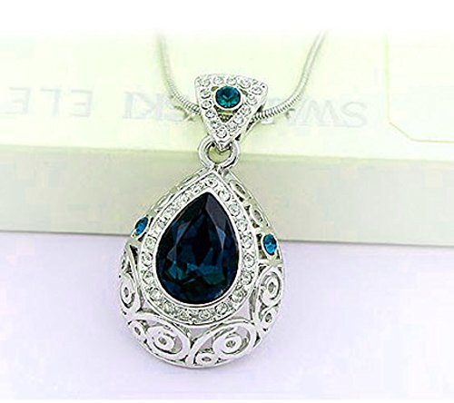-. Title : Signore-Signori Blue Angel Tear Drop Pendant Necklace Made With Austrian Crystals