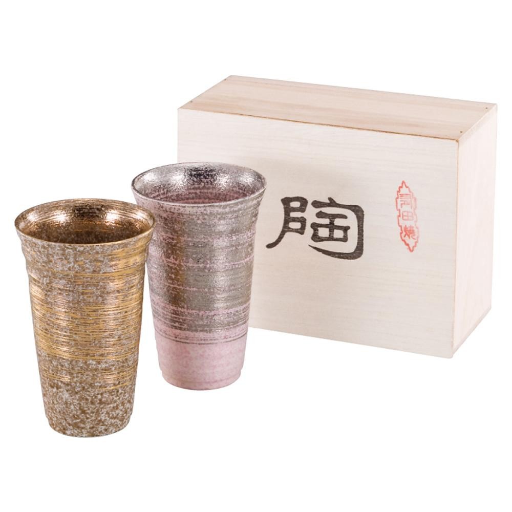 刷毛目の美しい、陶磁器製のペアタンブラー。木箱入りなので、ギフトにもぴったりです。