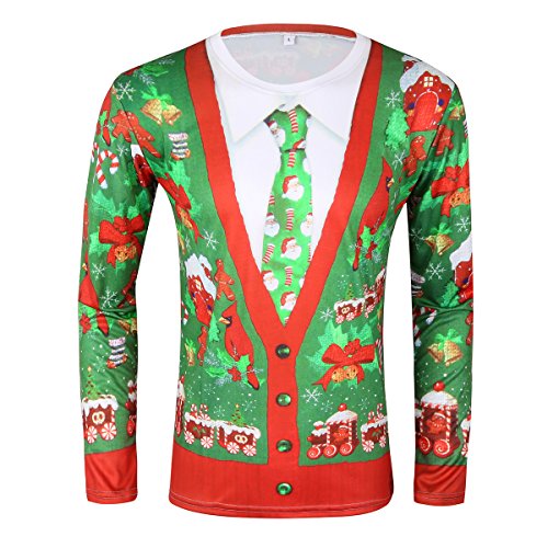 -. Title : CHICTRY Men's Long Sleeve 3D P.R.Inted T-shirt Funny Christmas Costume Tops