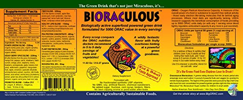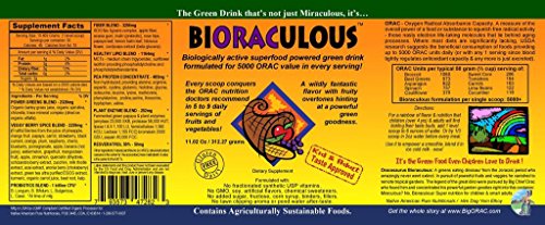Bioraculous is an amazing product, miraculous really. People can't believe that a green drink can taste so good, or do so much, and children love it. They may be familiar with brand X green drinks that either taste like dirt, the pond out back, or like a pile of lawn clippings from the last lawn mow. Not Bioraculous. No lawn clipping aroma or pond water after-taste. Kid & Adult Taste Approved!