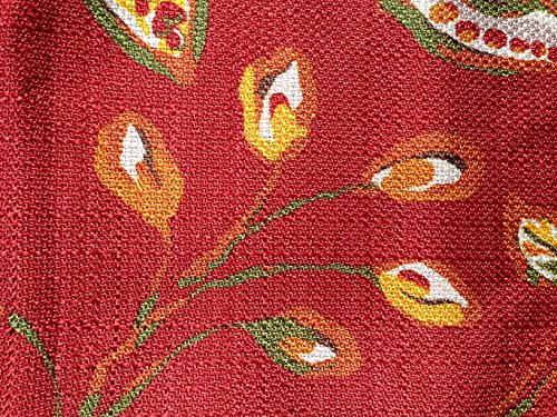 - Colorful floral design on a rich wine background