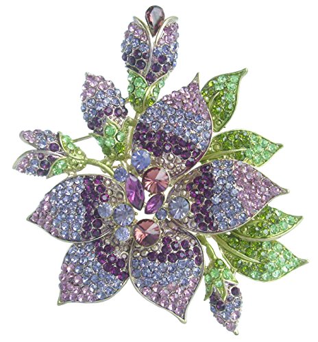 -. Feature : Material: Zinc Alloy, Austrian Crystal. / Main stone color: Purple. / The size of the brooch: 14.0cm(5.5")Height by 11.5cm(4.53")width. / Wrapping: Come with some spare crystals, and a gift box or favor bag (depend on product size).
