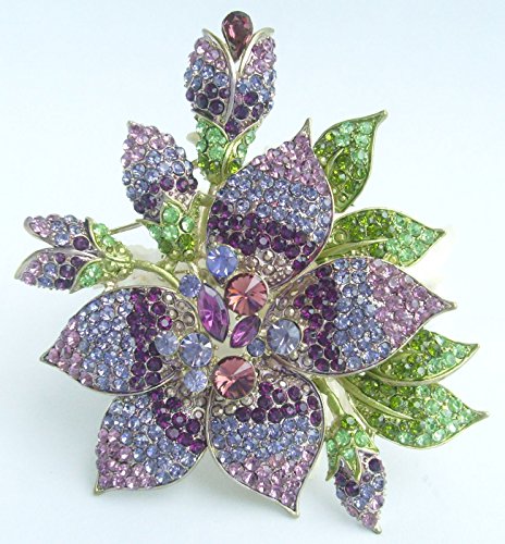 -. Title : Sindary 5.5" Gold-tone Purple Austrian Crystal Flower Brooch Pin