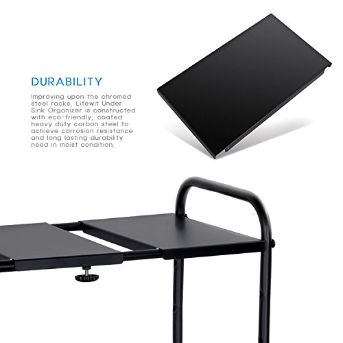 DURABILITY : Improving upon the chromed steel racks, Lifewit Under Sink Organizer is constructed with eco-friendly, coated heavy duty carbon steel to achieve corrosion resistance and long lasting durability need in moist condition.
