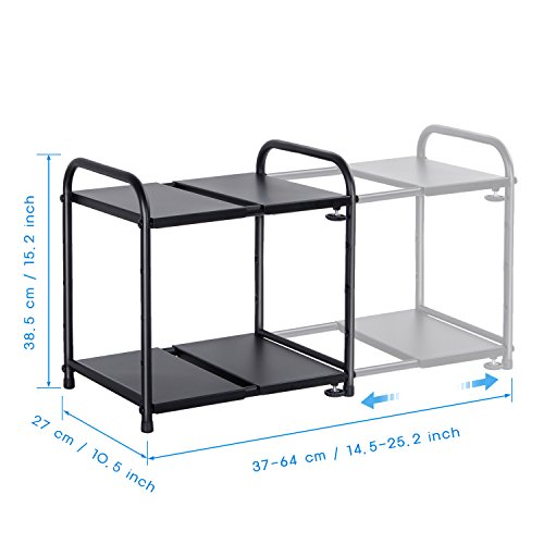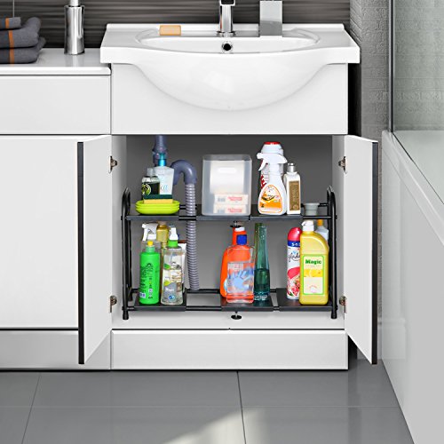 Lifewit Adjustable Under Sink Organizer, 2-Tier Expandable Rack for Bathroom Kitchen Organization, Premiun Carbon Steel