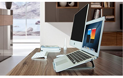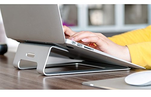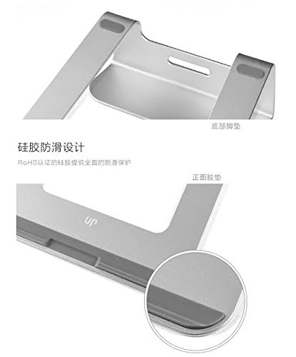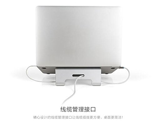 -. Feature : Made of aluminum,18-degree Ergonomics typing angle / Comfortable Viewing Height & Rubber cushion where it touchs your laptop / Cooling and Airflow Design with cable management space / Very light and portable ( 0.34 kg/ 12 ounce , size is 9.44 " ( 24cm) x 8.27"(21cm) x 2.6" (6.4cm)