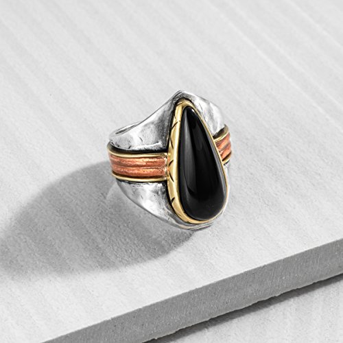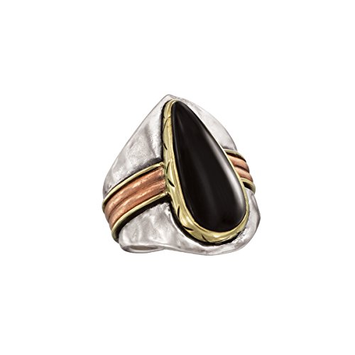 -. Feature : Channel your inner champion with the Black and Gold Ring featuring an agate stone set in brass on a sterling silver and copper band with hints of brass on the edges, you'll be feeling like a winner in no time / THE NEW WEST: Add a piece of southwestern inspired jewelry to your ensemble and you'll feel like you're instantly transported to an Albuquerque craft fair or taking in the Phoenix architecture. Southwestern-inspired jewelry is known for its Navajo or Native American patterns, fringes, tassels, warm and earthy colors. The jewelry is crafted in sterling silver with the occasional brass and copper accents, and is accompanied by turquoise, howlite, lapis, agate, coral and other semiprecious stones. / BRASS & STERLING SILVER: The combination of copper and zinc gives brass a soft, yellow glow and its malleable nature makes it an artisan favorite; when this golden-hued metal is used alongside Silpada's signature metal of sterling silver, it creates breathtaking antiqued or mixed-metal looks / Ring face measures 1 inch in width / Imported