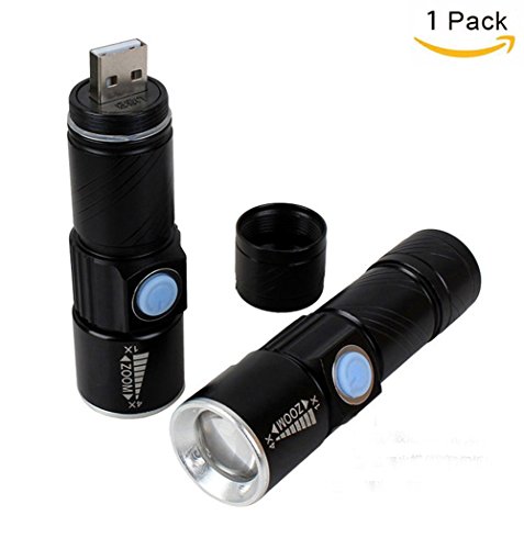 Global-store Mini LED Flashlight Rechargeable 350 Lumen, Focus Zoom Torch Light with 3 Modes Adjustable for Emergency and Activities EDC