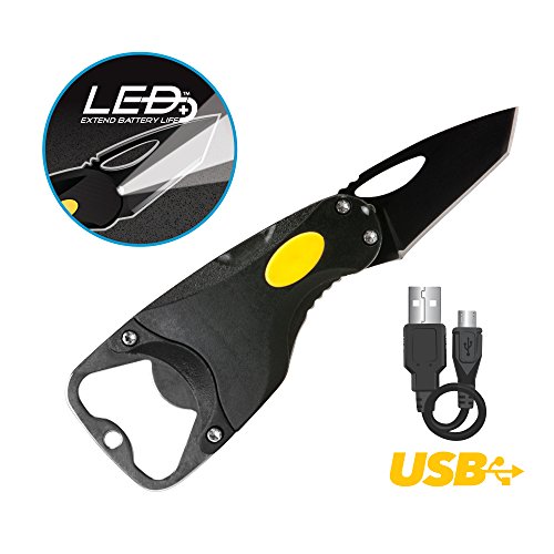 Life Gear Small 1.75" Pocket Knife, Rechargeable LED Flashlight, and Multi Tool Bottle Opener & Keychain - Light WRX M1