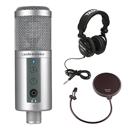 -. Feature : Audio Technica ATR2500-USB Cardioid Condenser USB Microphone w/ USB cable included / Low self-noise - ideally suited for digital recording equipment, compatible with Windows and Mac / Built-in headphone jack allows you to directly monitor from your microphone; headphone volume controlled w/ up and down buttons / High-quality AD convertor with 16 bit, 44.1/48 kHz sampling rate / Kit Includes: Audio Technica ATR2500-USB Mic w/ Knox Pop Filter and Headphones